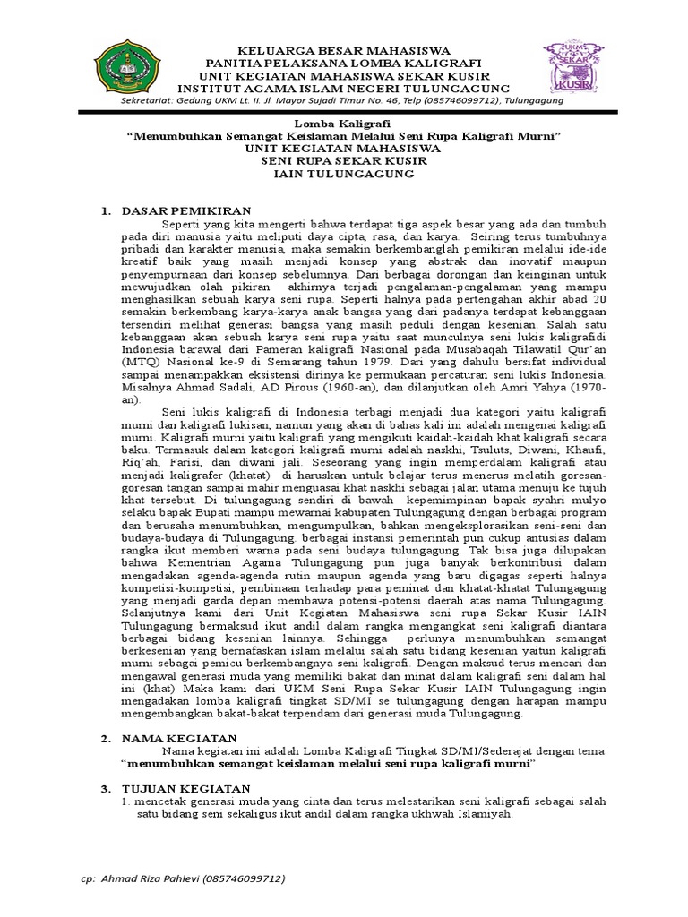PDF) Proposal Lomba Kaligrafi | Narsim MPar - Academia.edu