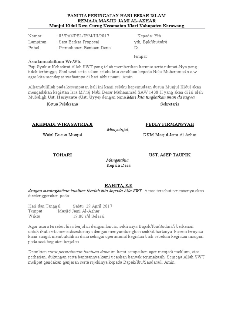 Contoh Proposal Bantuan Dana Isra Mi Raj - Berbagi Contoh Proposal