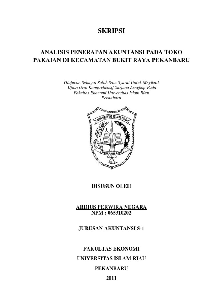 Analisis Penerapan Akuntansi Pada Toko Pakaian Di Kecamatan Bukit Raya Pekanbaru