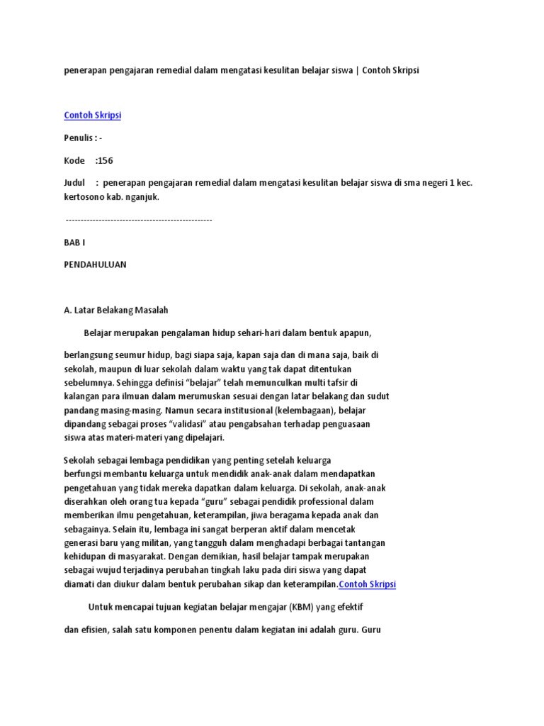 Skripsi Upaya Guru Dalam Mengatasi Kesulitan Belajar Siswa Pdf - Kumpulan Berbagai Skripsi