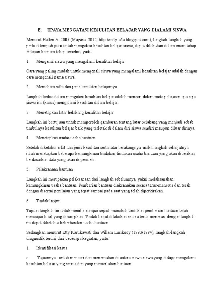 DOC) Kesulitan Belajar Faktor dan Penyebabnya | Fatimah Nurul Jamilah - Academia.edu