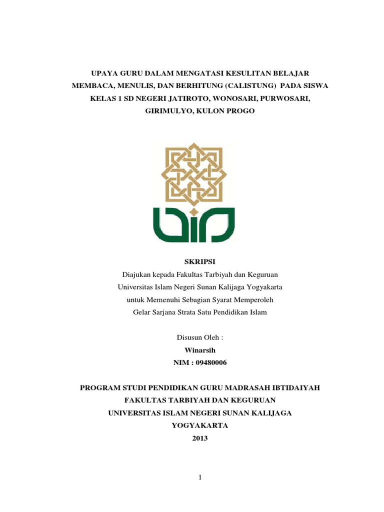 DOC) Outline skripsi tentang Upaya Guru Dalam Mengatasi Kesulitan Membaca,Menulis dan Berhitung (CALISTUNG) Pada Siswa Kelas 2 SD | muhamad syaban subekti - Academia.edu