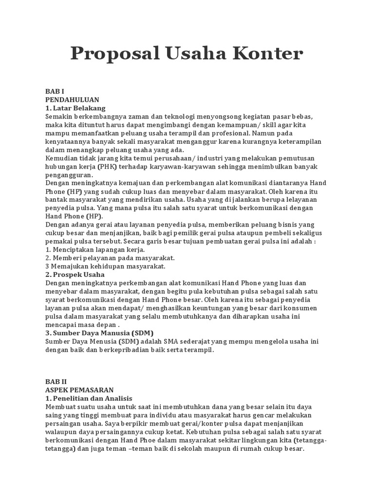 Contoh Proposal Usaha Konter Hp Dan Pulsa - Berbagi Contoh Proposal