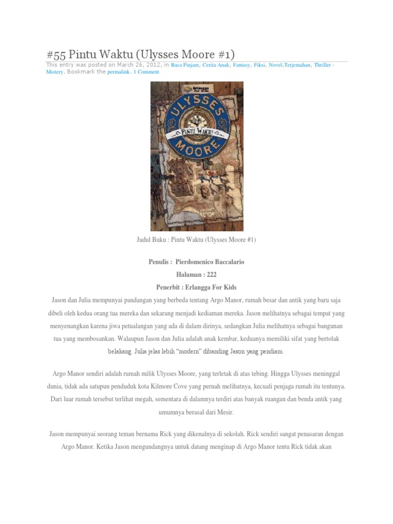 Review : Ulysses Moore -Pintu Waktu – Sudut Baca