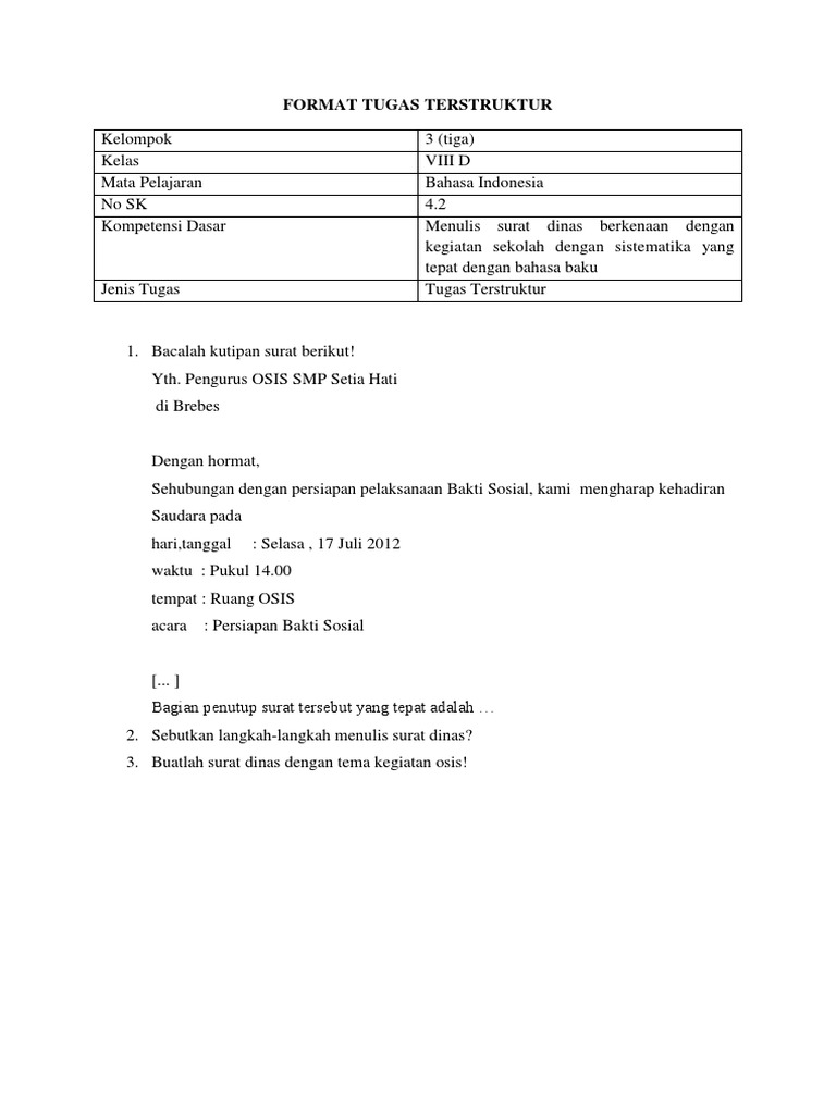 Format Tugas Terstruktur