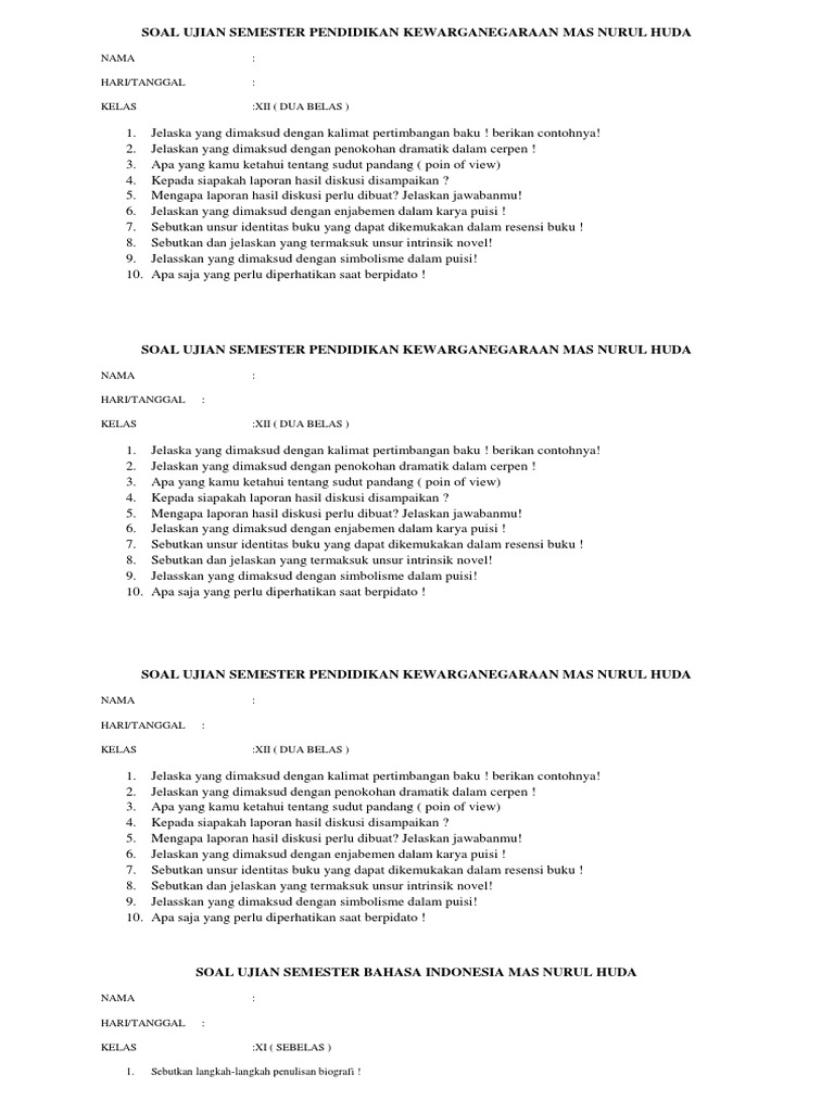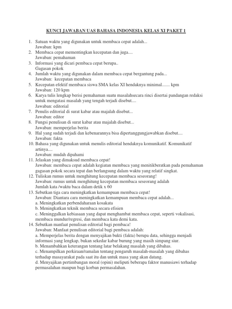 Soal Essay Bahasa Indonesia Kelas 10 Sma/Ma Dan Kunci Jawabnya Terbaru