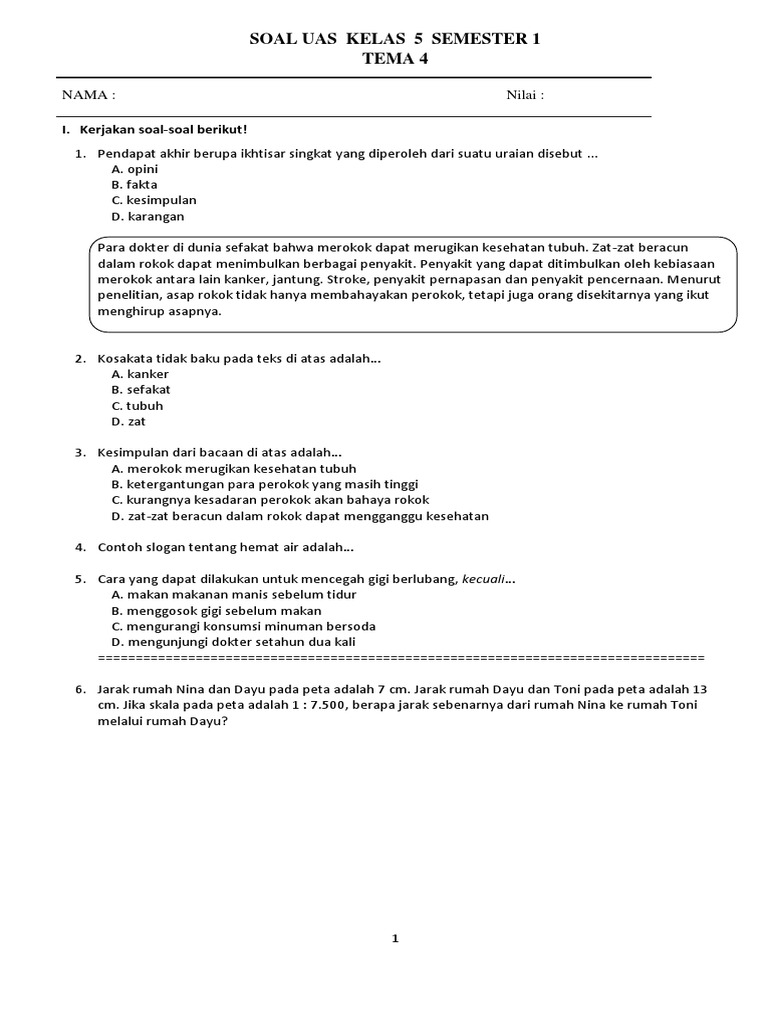 Draft Soal Tema 4 Kelas 5 Kur 13 - [DOCX Document]