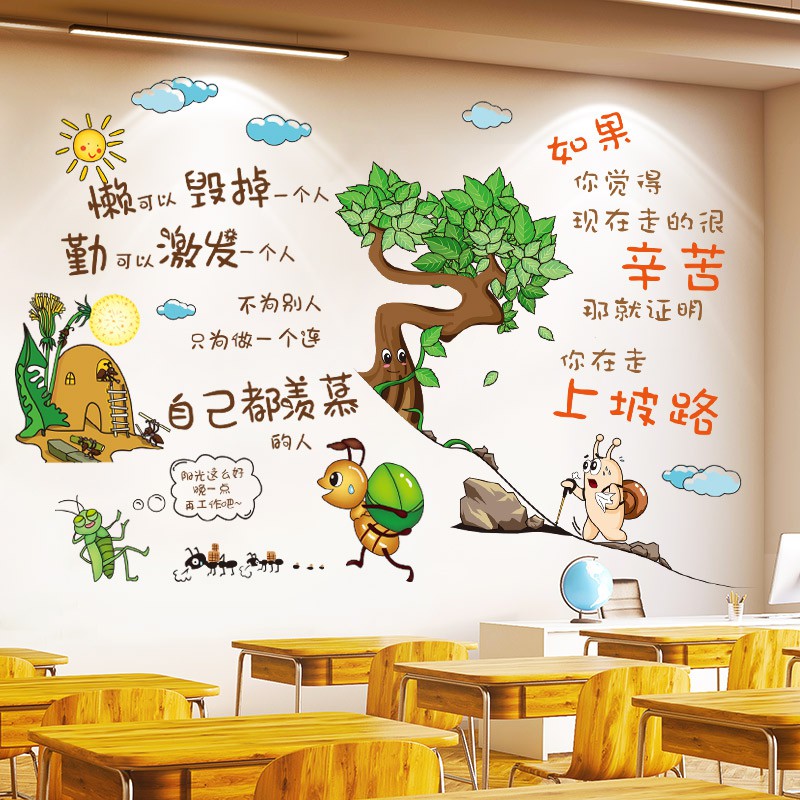 QT-X Kartun inspirasional stiker dinding, Slogan motivasi poster, Kertas ins kamar tidur asrama tata letak dekorasi kertas perekat diri | Shopee Indonesia