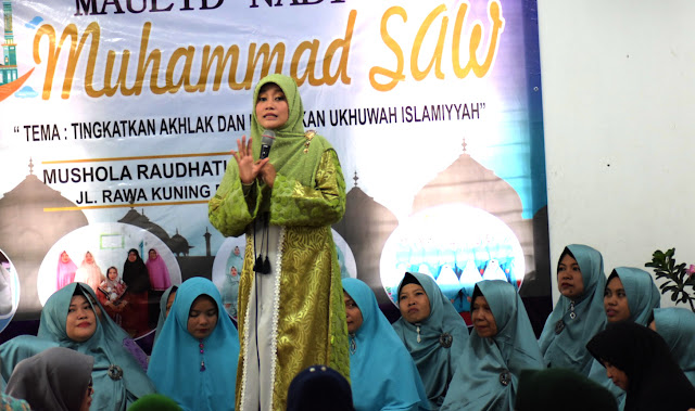 Ustadzah Lulu Susanti Berikan Tausyiah pada Peringatan Maulid Nabi MT Roudhotul Jannah - Laras Post
