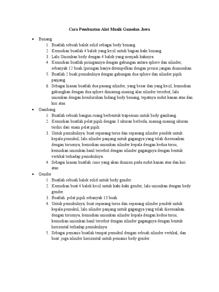 Cara Pembuatan Alat Musik Gamelan Jawa