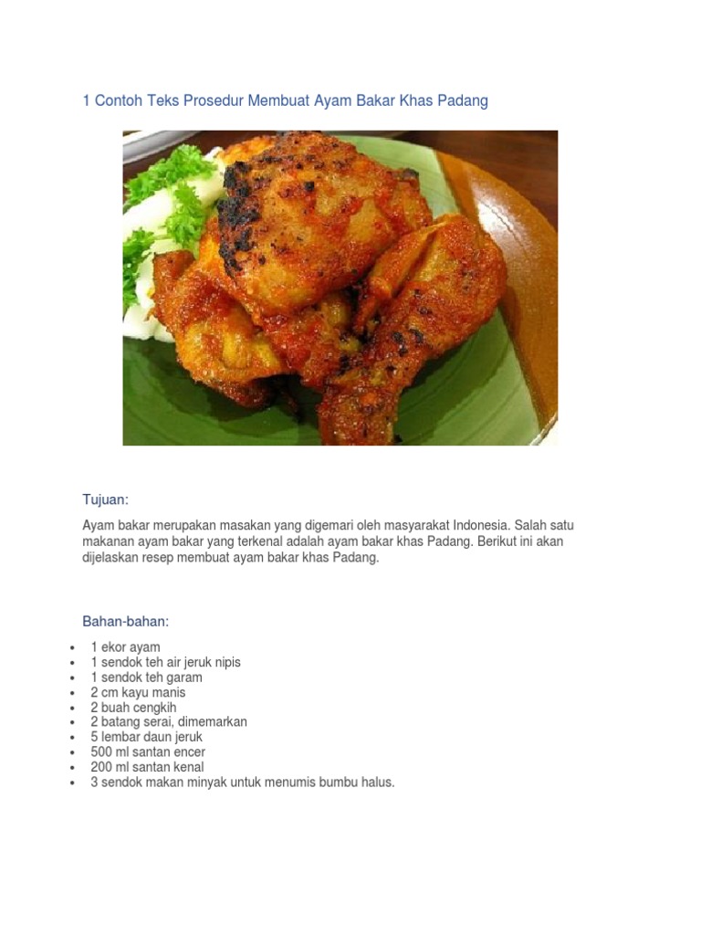 1 Contoh Teks Prosedur Membuat Ayam Bakar Khas Padang: Tujuan