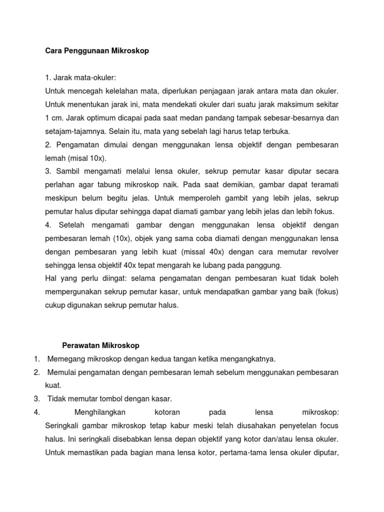 Cara Penggunaan Mikroskop Dan Cara Pengamatan Preparat2