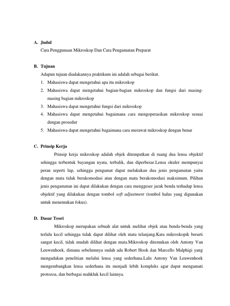 Laporan Praktikum Biologi “Cara Menggunakan Mikroskop” HALAMAN PENGESAHAN | Fiisa Mininada - Academia.edu