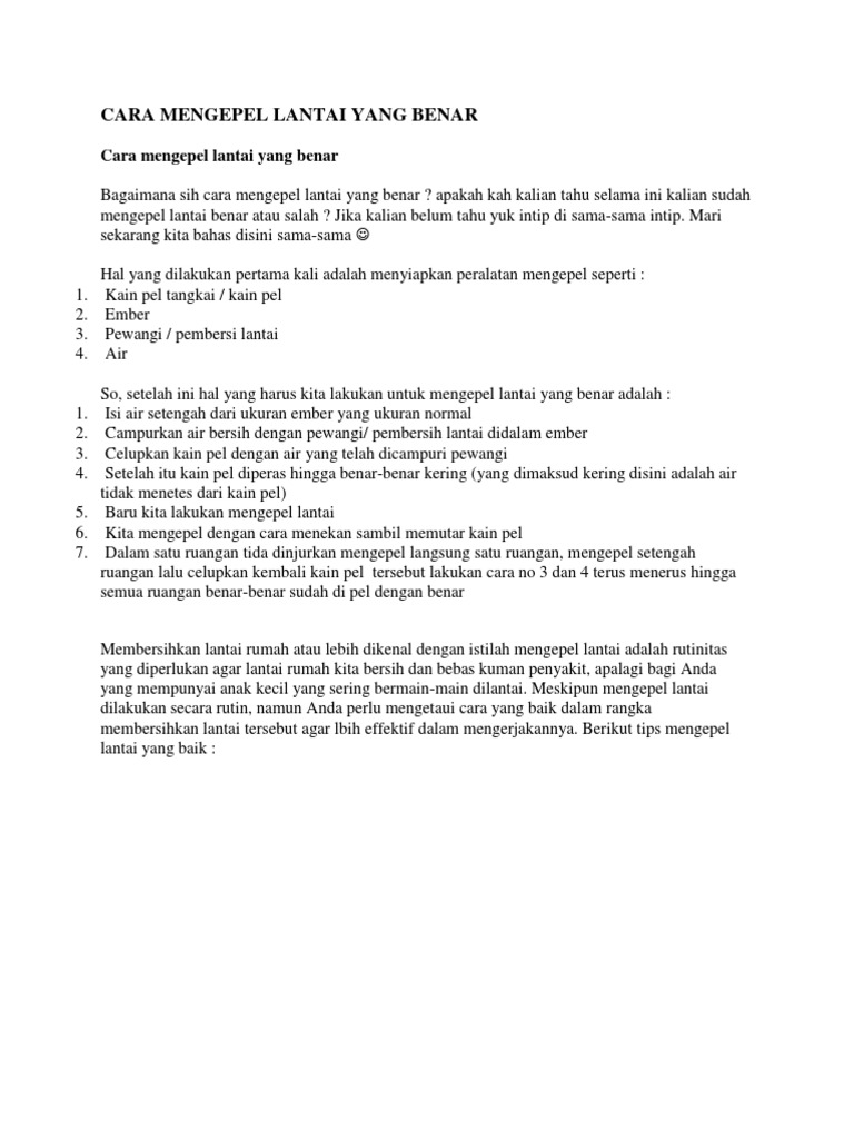 Urutan petunjuk penggunaan cairan pembersih lantai yang tepat adalah - Brainly.co.id