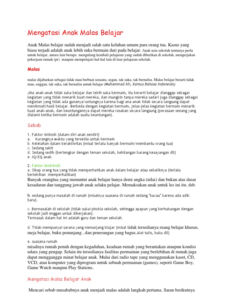 DOC) Cara Mengatasi Rasa Malas Belajar | Arifin Friendsix - Academia.edu