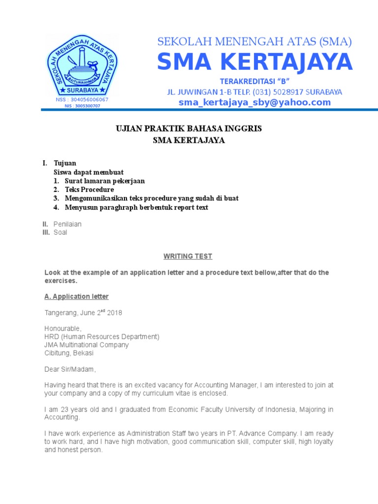 Contoh Soal Ujian Praktek Bahasa Inggris Smp Kelas 9 - Dapatkan Contoh