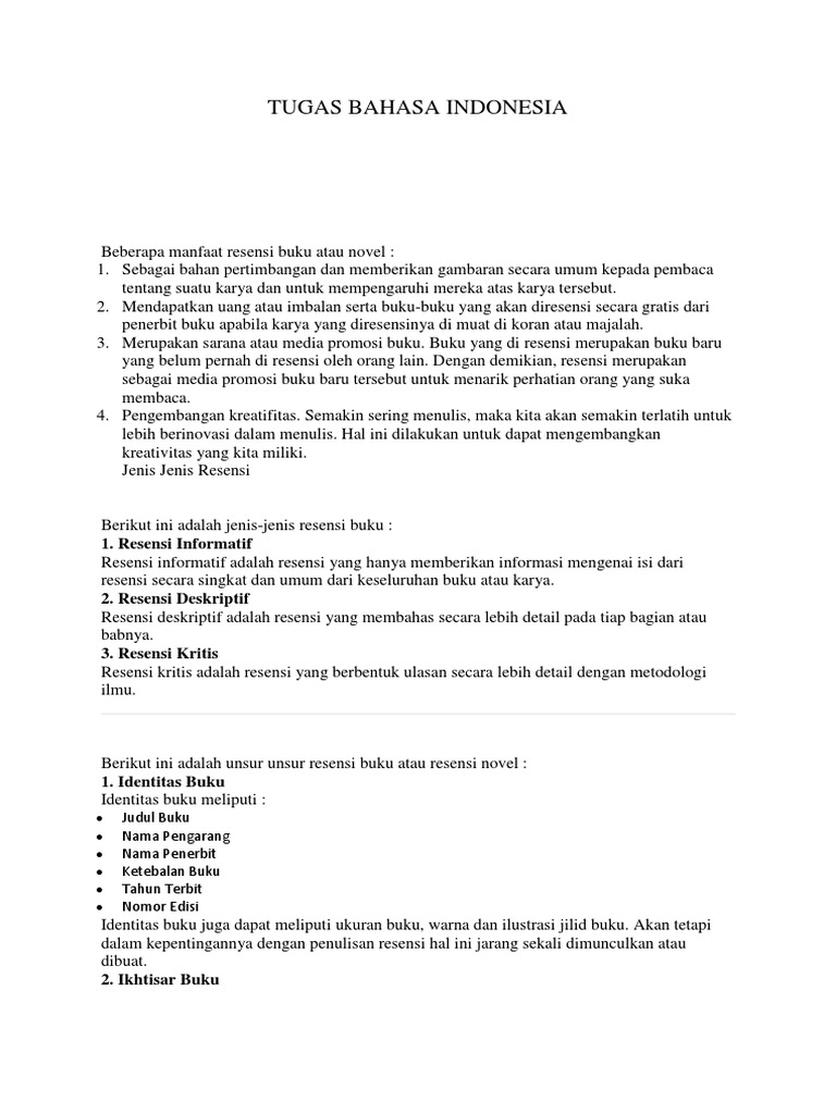 Tugas Bahasa Indonesia: 1. Resensi Informatif