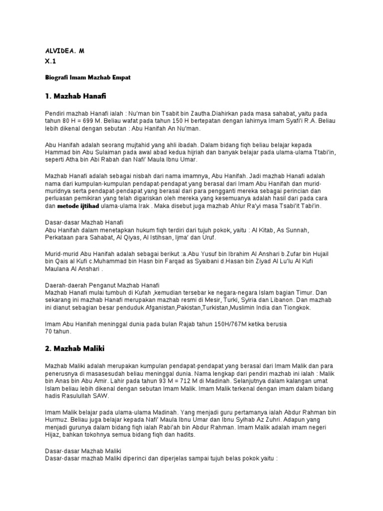DOC) Biografi Imam Hanafi (Abu Hanifah) | Mengenal 4 Imam Mazhab Islam Terkenal Part 1 Biografi Imam Hanafi (Abu Hanifah) | Mengenal 4 Imam Mazhab Islam Terkenal Part 1 -Pengertian | masykur hasyim - Academia.edu