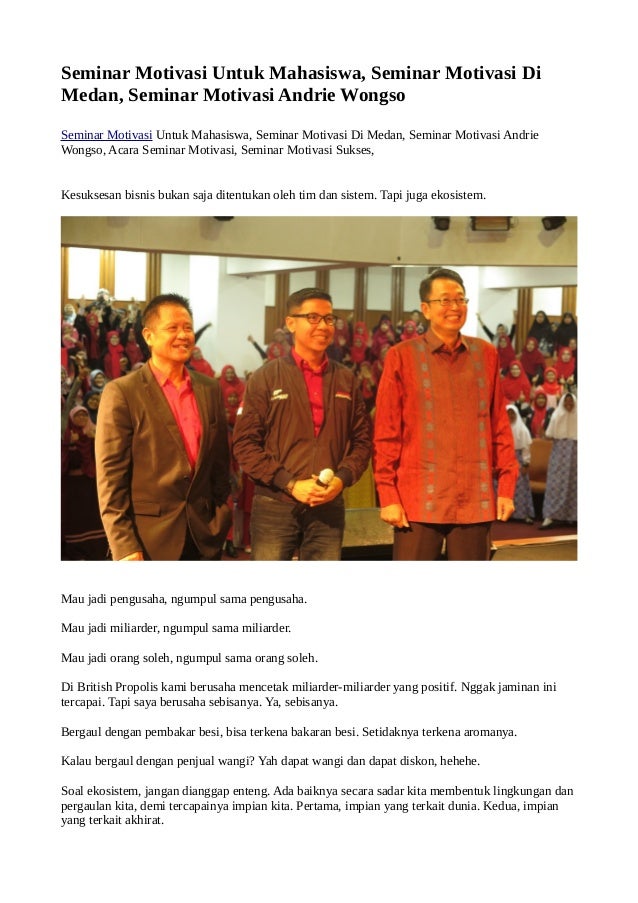 Seminar motivasi untuk mahasiswa, seminar motivasi di medan, seminar