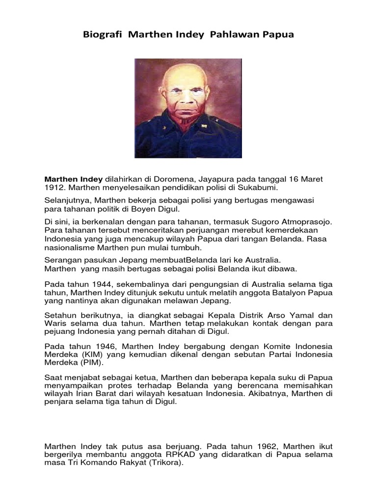 Biografi Marthen Indey Pahlawan Papua