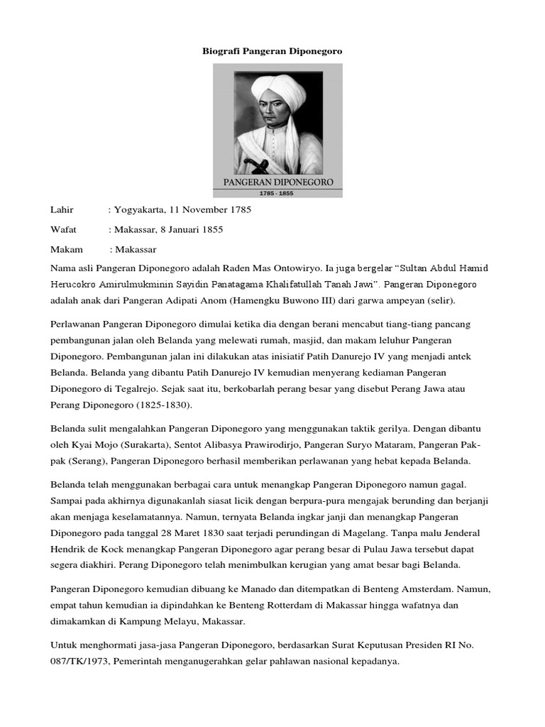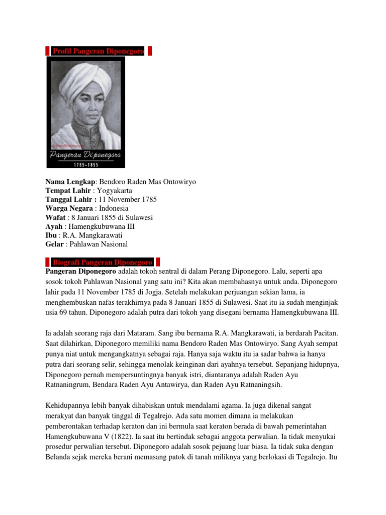 biografi pangeran diponegoro bahasa sunda – Info Biografi