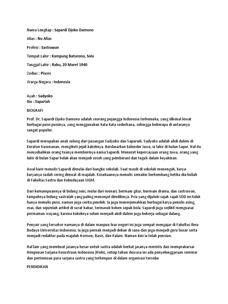 DOC) Biografi Sapardi Djoko Damono.docx | ahmad s - Academia.edu