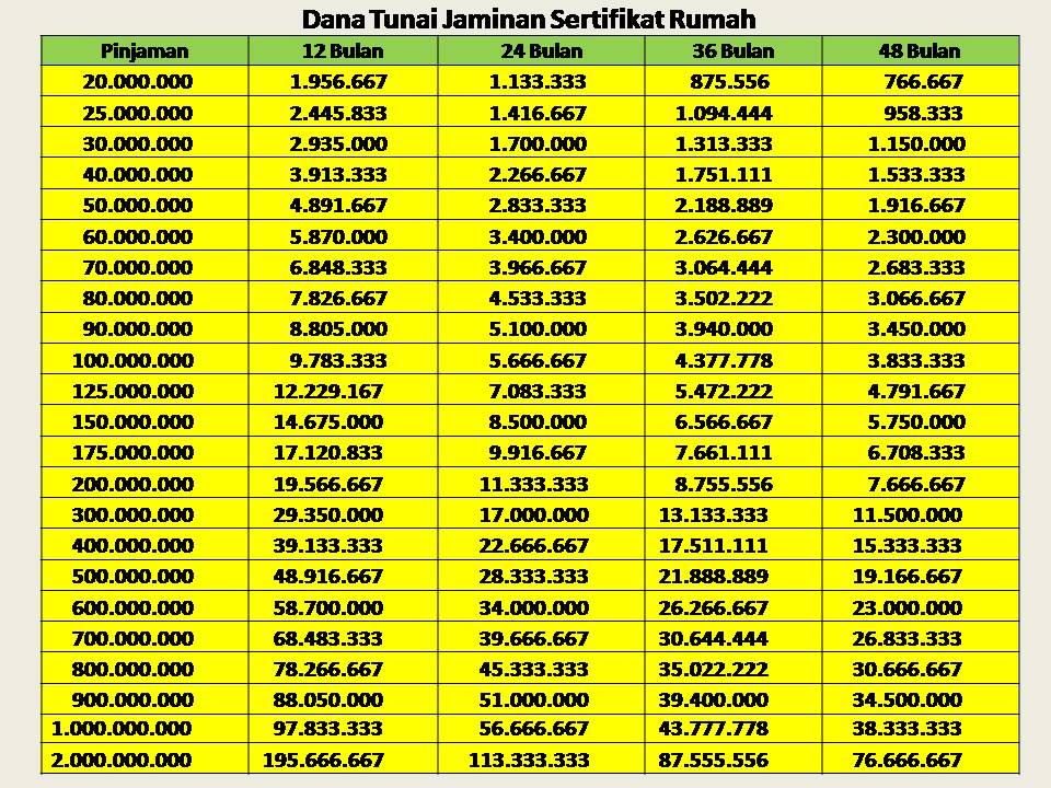 Daftar Tabel Angsuran Kredit Pinjaman Jaminan BPKB Terbaru | Bpkb-Ku