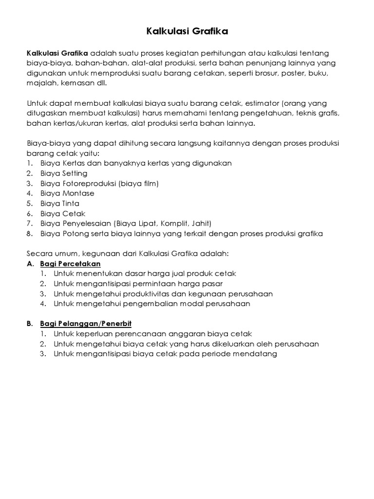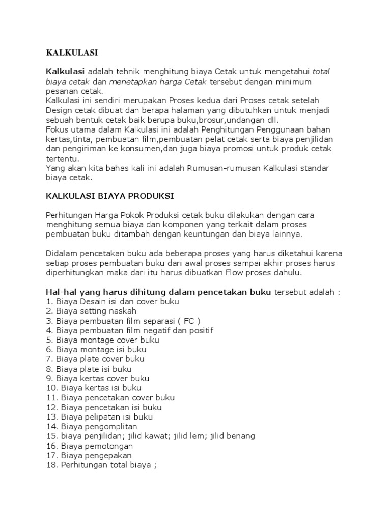 Cara Menghitung Biaya Pokok Cetakan