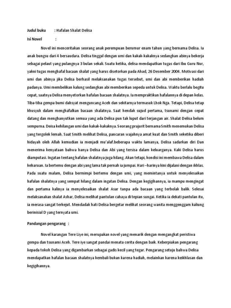 DOC) LAPORAN NOVEL HAFALAN SHOLAT DELISA KARYA TERE LIYE OLEH | muhammad raihan - Academia.edu