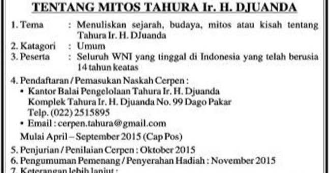 Info Lomba Menulis Cerpen Mitos Tahura Ir. H. Juanda (DL ?) | Info …