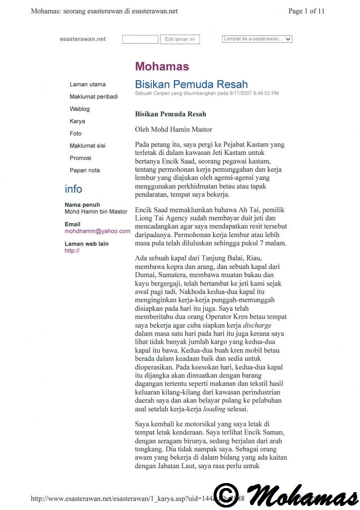 Kumpulan Cerpen Mohamas: 16 Bisikan Pemuda Resah