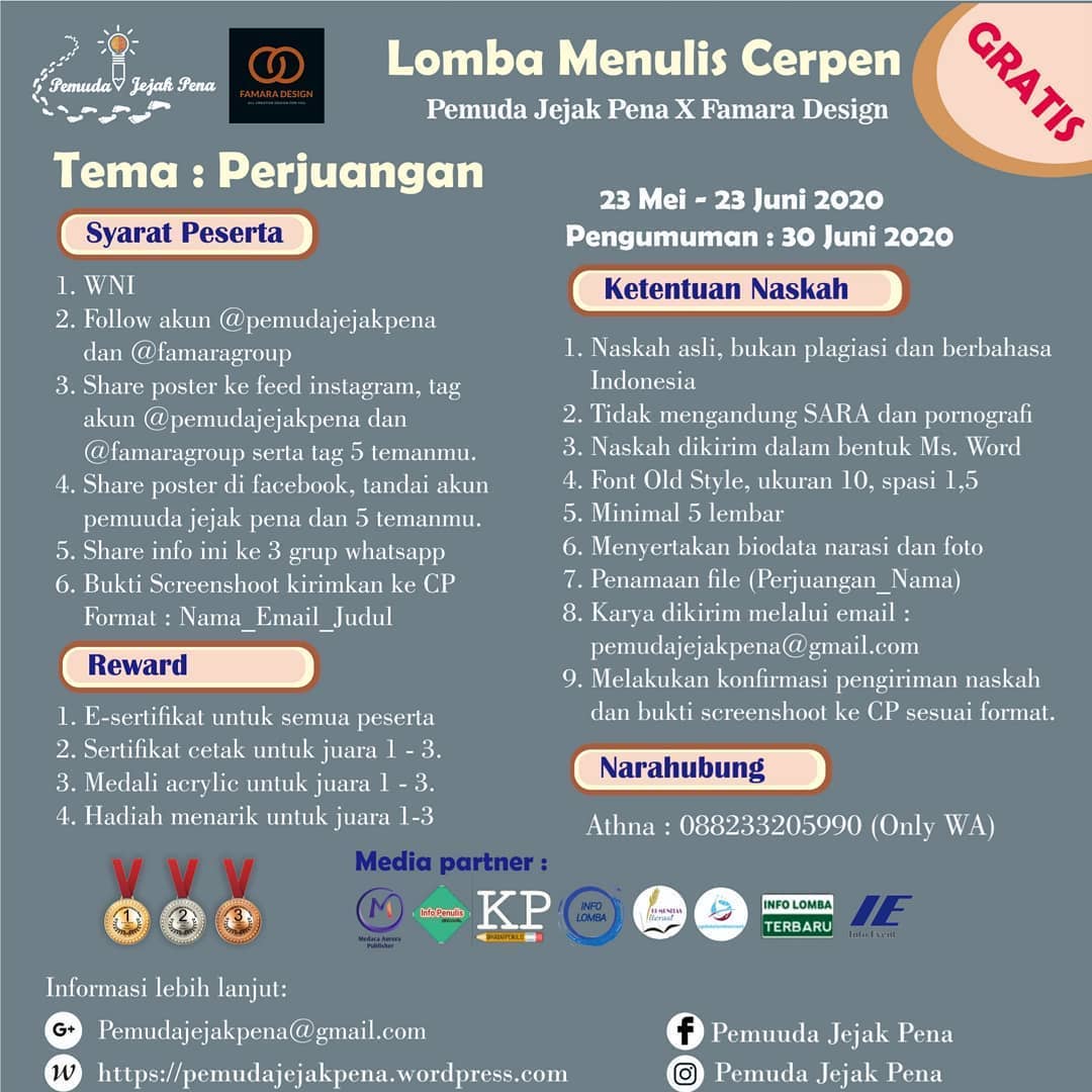 Info Komunitas Online: [DL : 23-6-2020] Lomba Menulis Cerpen Pemuda Jejak Pena
