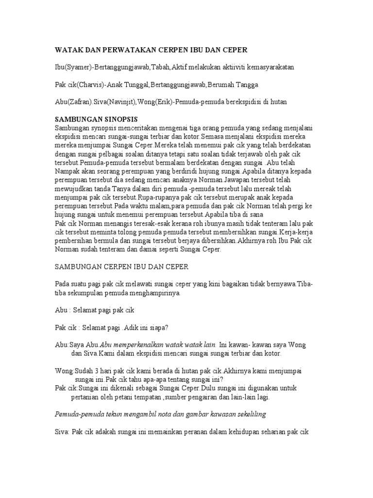 Watak Dan Perwatakan Cerpen Ibu Dan Ceper