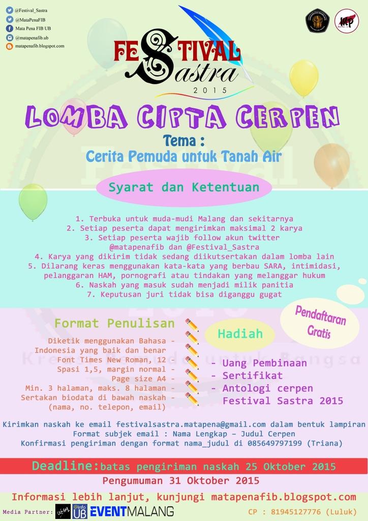 IG - LINE : infoub on Twitter: “@MataPenaFIB Lomba Cipta Cerpen tema “Cerita Pemuda Untuk Tanah Air” | Sampai 25 Oktober | GRATIS http://t.co/QphVM3Xaxe”