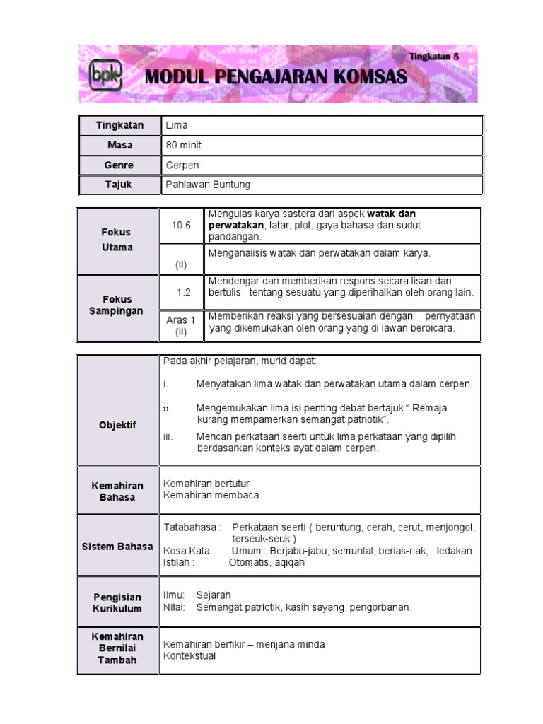 Modul Pengajaran Cerpen Pahlawan Buntung