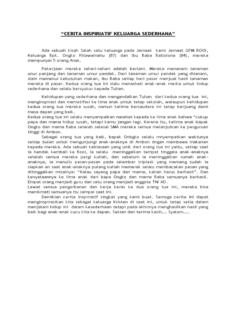 cerpen tentang keluarga sederhana singkat ada masalah dan ada majasnya - Brainly.co.id