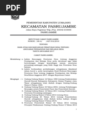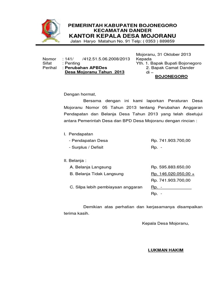 Contoh Peraturan Kepala Desa Penjabaran Perubahan APB-Desa - antapedia.com