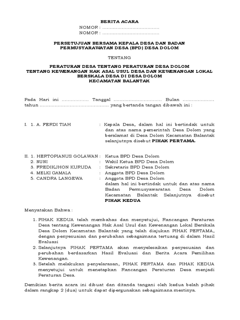 Contoh Berita Acara Rapat Bpd Desa | Kumpulan Soal pelajaran 8