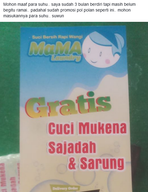 Cuci Mukenah, Sajadah Dan Karpet Masjid Gratis, Perlukah Ditulis Besar-Besar? | Laundry Bisnis Indonesia