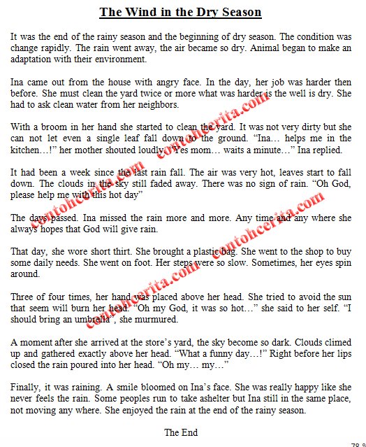 Contoh Cerpen Singkat B.Inggris tentang Hujan - Contoh Cerita | Cerpen | Naskah Drama | Puisi | Cerita Sukses
