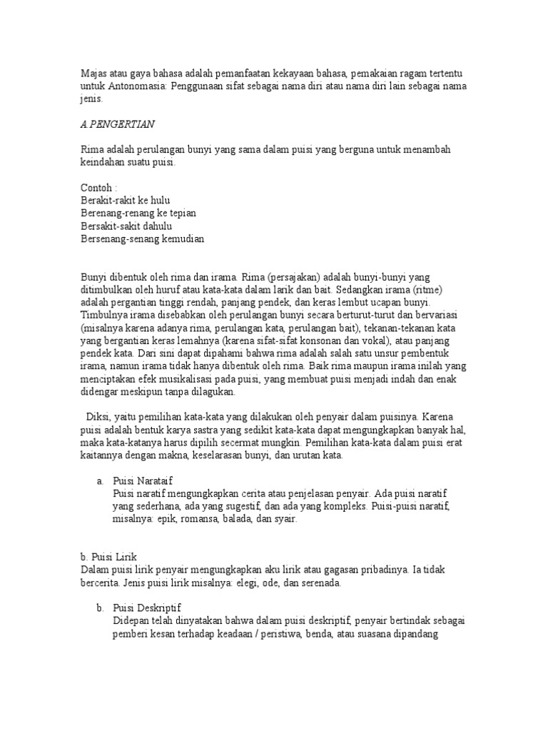 Majas Atau Gaya Bahasa Adalah Pemanfaatan Kekayaan