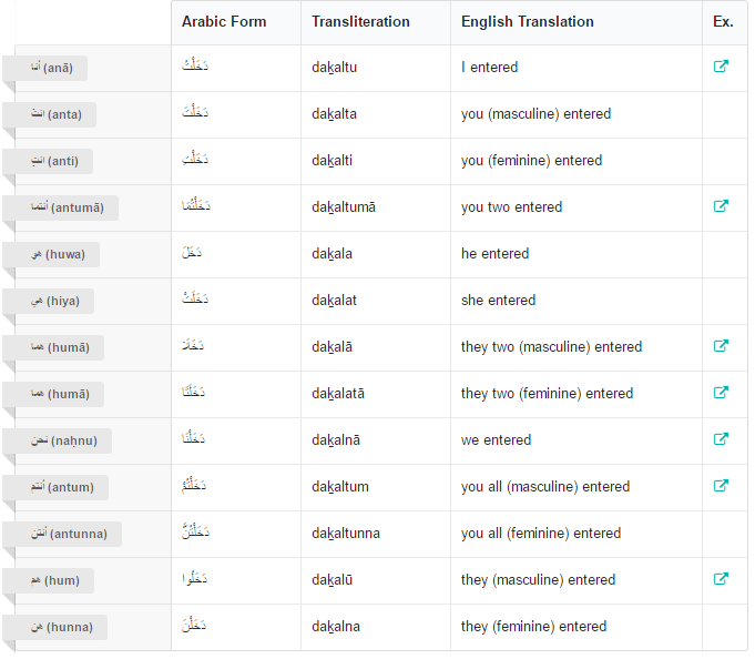 Fiil Madhi beserta Dhomir, Table Nahwu dan Shorof Memudahkan Hafalan - Hilyah, Belajar Bahasa Arab Online