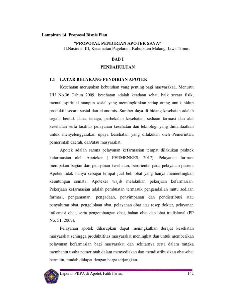 Lampiran 14. Proposal Bisnis Plan “Proposal Pendirian Apotek Saya”
