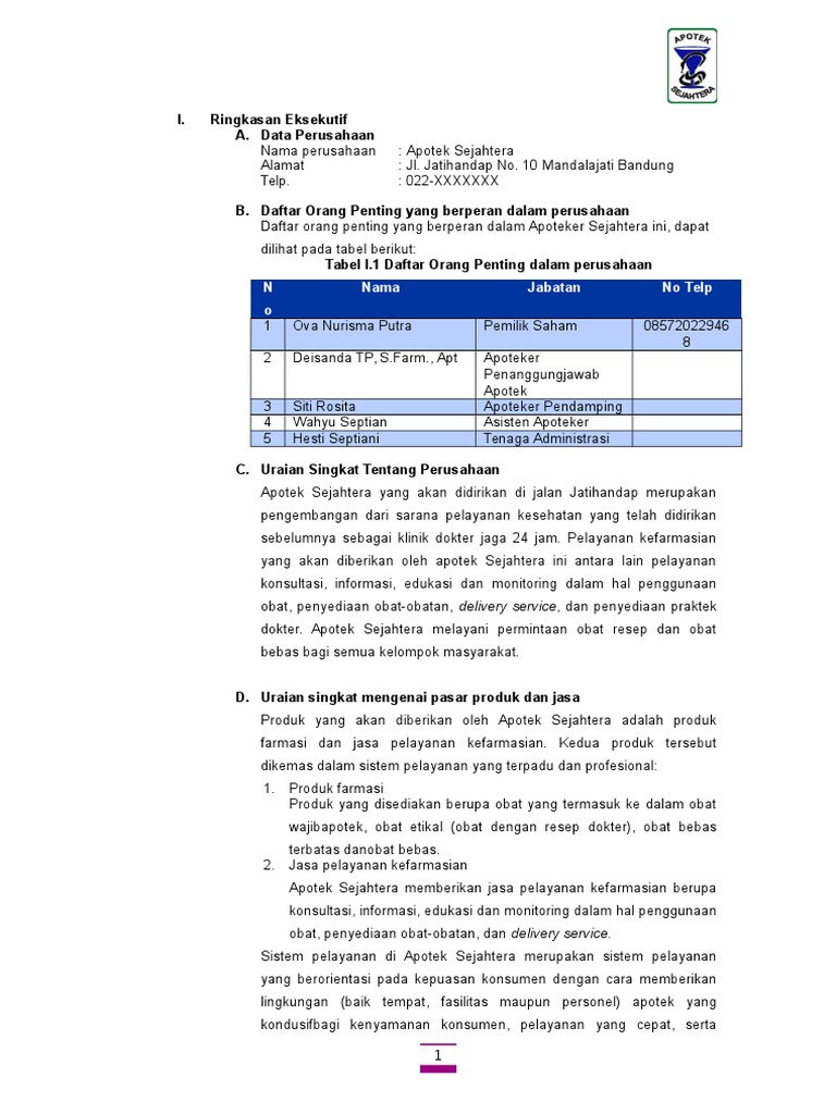 Bisnis Plan Apotek K24.doc - Proposal bisnis plan APOTIK SEHATI BAB I RENCANA ORGANISASI 1.1 RENCANA ORGANISASI 1.1.1 Latar Belakang Pendirian Apotek | Course Hero