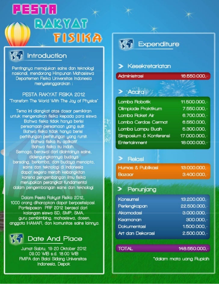 SURAT MASUK - PROPOSAL PESTA RAKYAT FISIKA, dari BEM FMIPA UI Depok