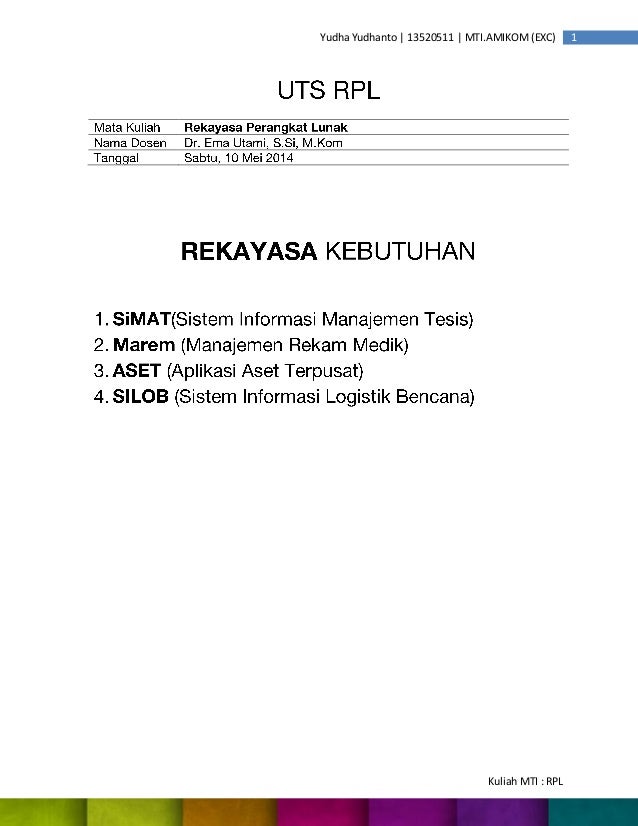 DOC) PROPOSAL TUGAS AKHIR TENTANG REKAYASA PERANGKAT LUNAK / SOFTWARE Oleh : NAMA : ANDIK INDRAWANTO NIM : 09590030 | Eko Sukirman - Academia.edu