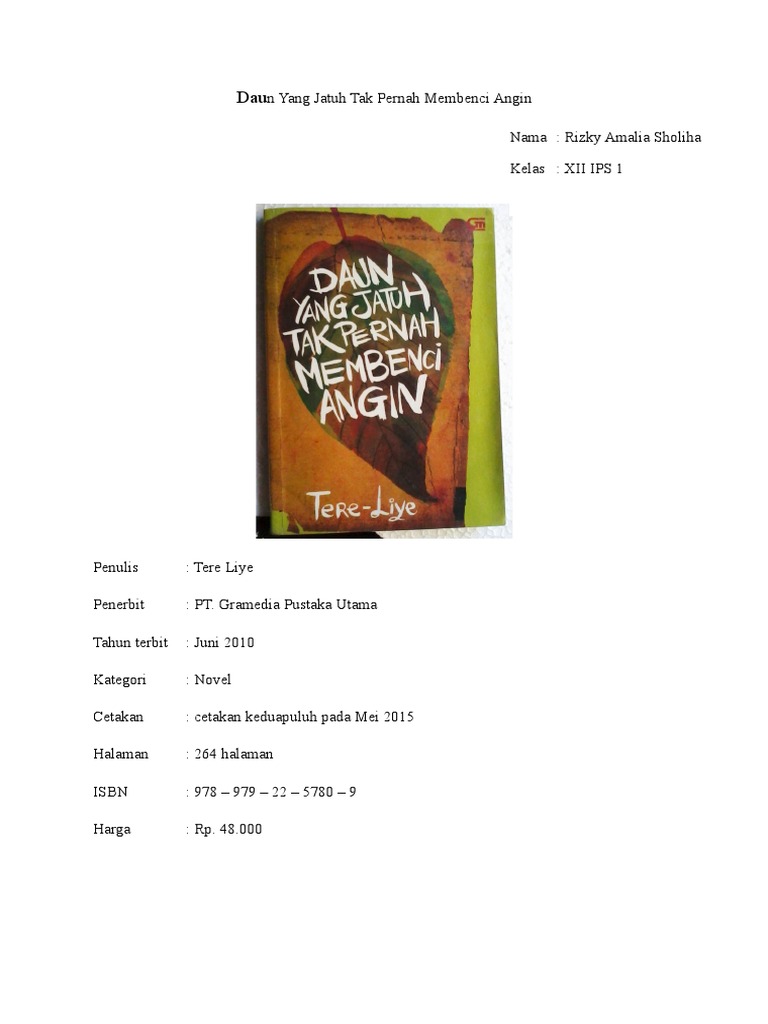 Contoh Resensi Novel Daun Yang Jatuh Tak Pernah Membenci Angin