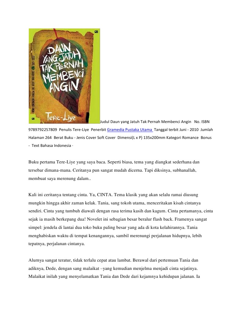 Resensi Novel Tere Liye “Daun Jatuh Tak Pernah Membenci Angin” | KASKUS