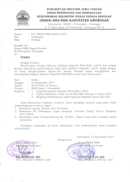 Undangan Operator Dapodik SMA dan SMK Kabupaten Grobogan - Komunitas SMK Kabupaten Grobogan