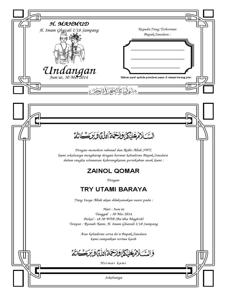 DOC) Contoh Surat Undangan Syukuran Pernikahan | Liwaassin Lampbara - Academia.edu